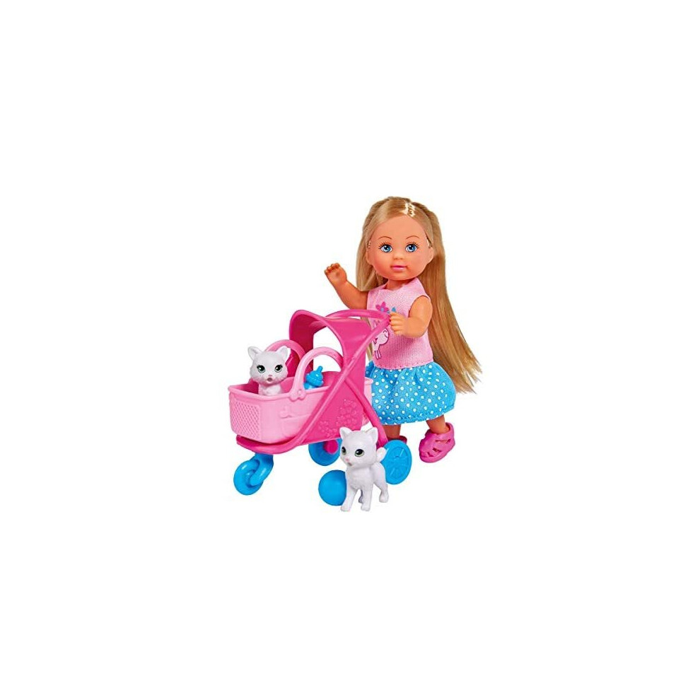 Simba 105733348 - Evi Love Cat Buggy, with Two Cats in Cat Buggy, Removable Bag, Accessories, Dressing Doll, 12 cm, for Children from 3 Year