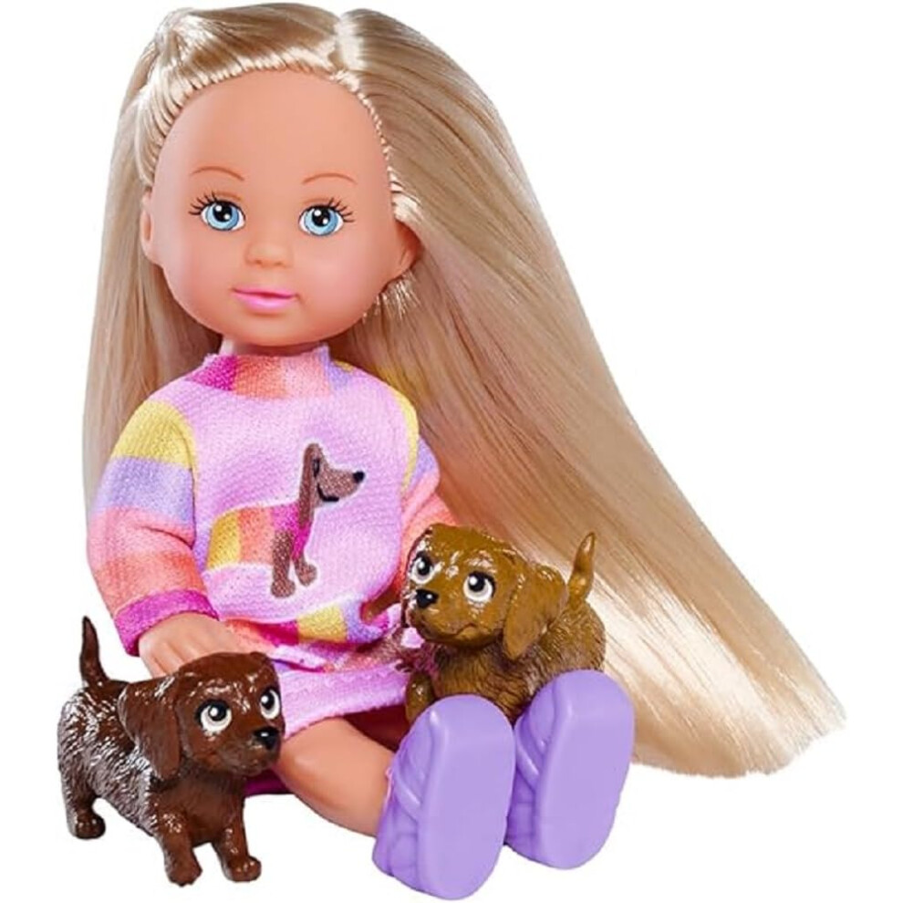 Simba 105733688 Evi Love Dogs, Doll with Two Cute Dachshunds on a Leash, 12 cm Toy Doll, from 3 Years