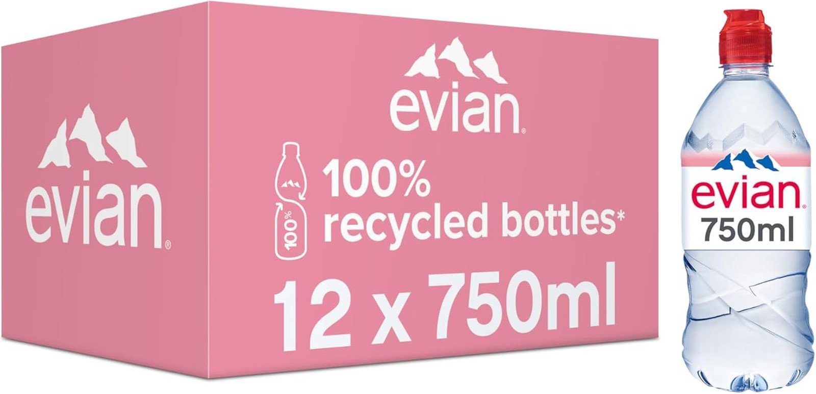 12 x Evian Sports Mineral Water 750ml (Plastic Bottles) - Free Delivery Fullcase