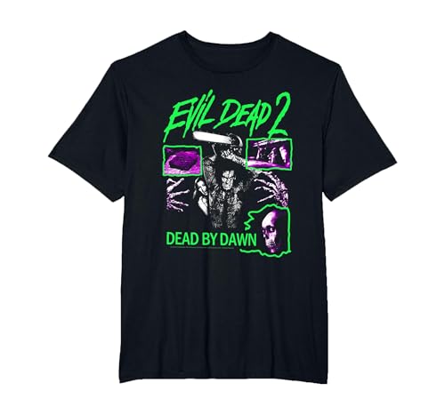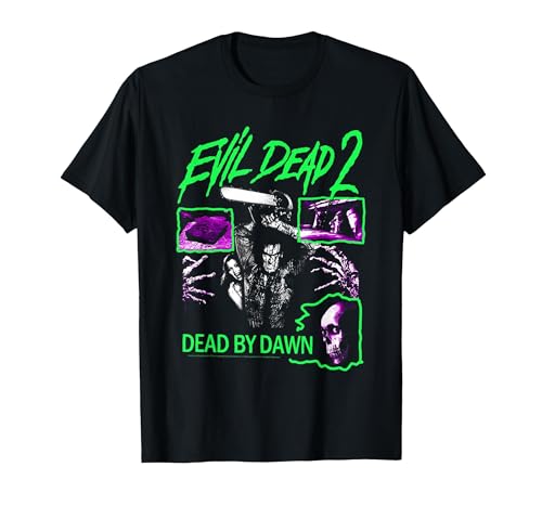 Evil Dead 2 Dead by Dawn Neon Collage Horror Movie T-Shirt, Men, Black, Small