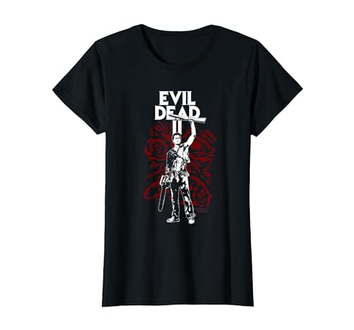 Evil Dead 2 Ash with The Book of The Dead Horror Movie T-Shirt, Women, Black, X-Large