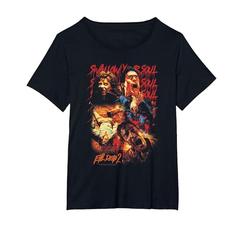 Evil Dead 2 Swallow Your Soul Collage Horror Movie T-Shirt, Women's Plus, Black, 5X