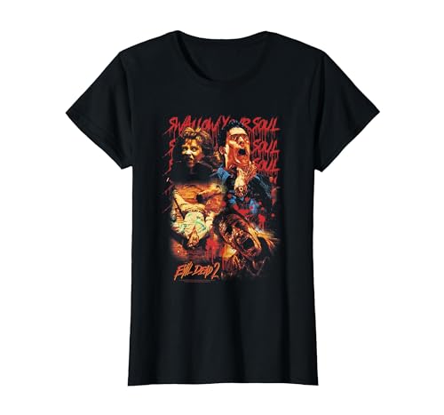 Evil Dead 2 Swallow Your Soul Collage Horror Movie T-Shirt, Women, Black, X-Large