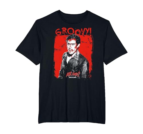 Evil Dead 2 Ash Williams Bloody Groovy Horror Comedy T-Shirt, Men, Black, X-Large