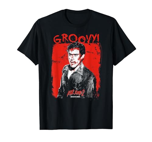 Evil Dead 2 Ash Williams Bloody Groovy Horror Comedy T-Shirt, Men, Black, XX-Large