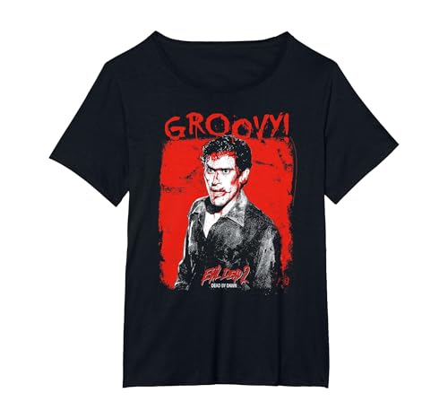 Evil Dead 2 Ash Williams Bloody Groovy Horror Comedy T-Shirt, Women's Plus, Black, 3X