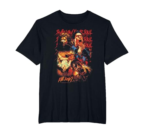 Evil Dead 2 Swallow Your Soul Collage Horror Movie T-Shirt, Men, Black, Medium