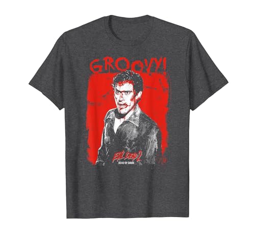 Evil Dead 2 Ash Williams Bloody Groovy Horror Comedy T-Shirt, Men, Dark Heather Grey, Small