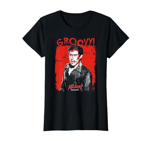 Evil Dead 2 Ash Williams Bloody Groovy Horror Comedy T-Shirt, Women, Black, X-Small