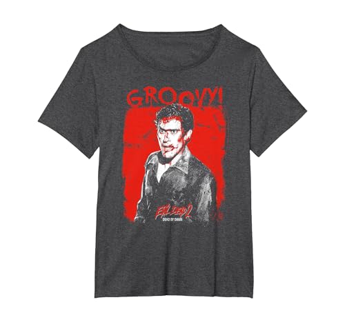 Evil Dead 2 Ash Williams Bloody Groovy Horror Comedy T-Shirt, Women, Dark Heather Grey, 3X-Large