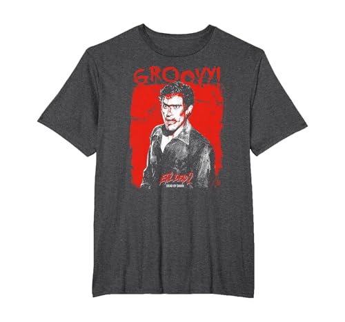 Evil Dead 2 Ash Williams Bloody Groovy Horror Comedy T-Shirt, Men, Dark Heather Grey, Medium