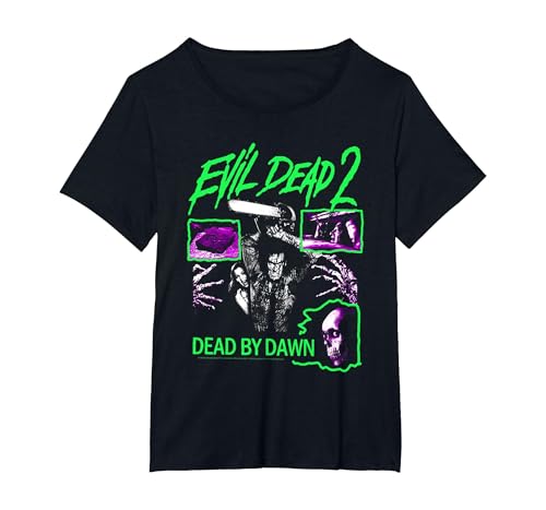 Evil Dead 2 Dead by Dawn Neon Collage Horror Movie T-Shirt, Women's Plus, Black, 5X
