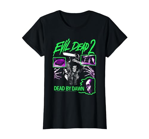 Evil Dead 2 Dead by Dawn Neon Collage Horror Movie T-Shirt, Women, Black, Small