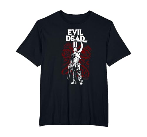 Evil Dead 2 Ash with The Book of The Dead Horror Movie T-Shirt, Men, Black, Medium