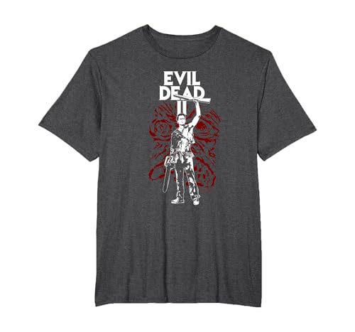Evil Dead 2 Ash with The Book of The Dead Horror Movie T-Shirt, Men, Dark Heather Grey, Medium