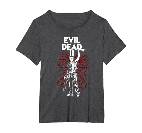 Evil Dead 2 Ash with The Book of The Dead Horror Movie T-Shirt, Women, Dark Heather Grey, 3X-Large
