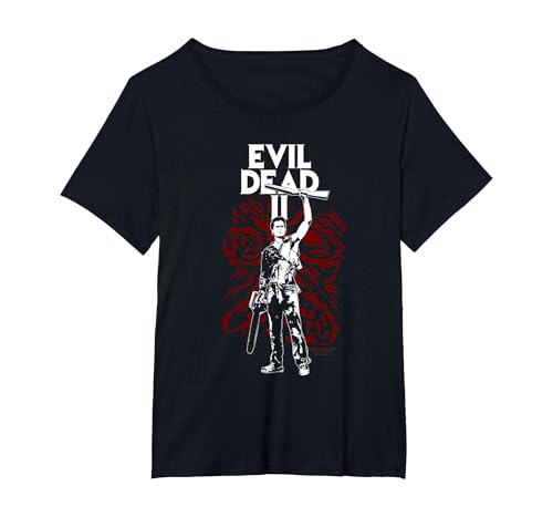 Evil Dead 2 Ash with The Book of The Dead Horror Movie T-Shirt, Women's Plus, Black, 4X