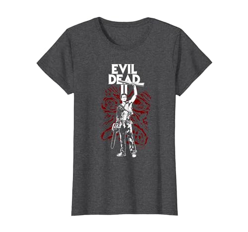 Evil Dead 2 Ash with The Book of The Dead Horror Movie T-Shirt, Women, Dark Heather Grey, X-Small