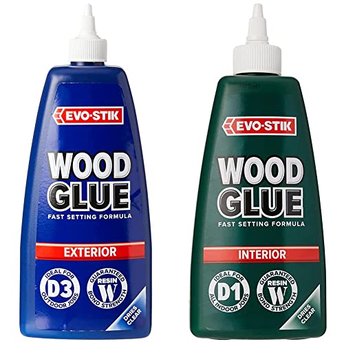 EVO-STIK Wood Glue Exterior, Weatherproof, Extra Strong, Fast Setting, Dries Clear, 500ml & EVO-STIK Wood Glue - Interior, Extra Strong, Fast Setting, Suitable For All Wood Types, Dries Clear, 500ml