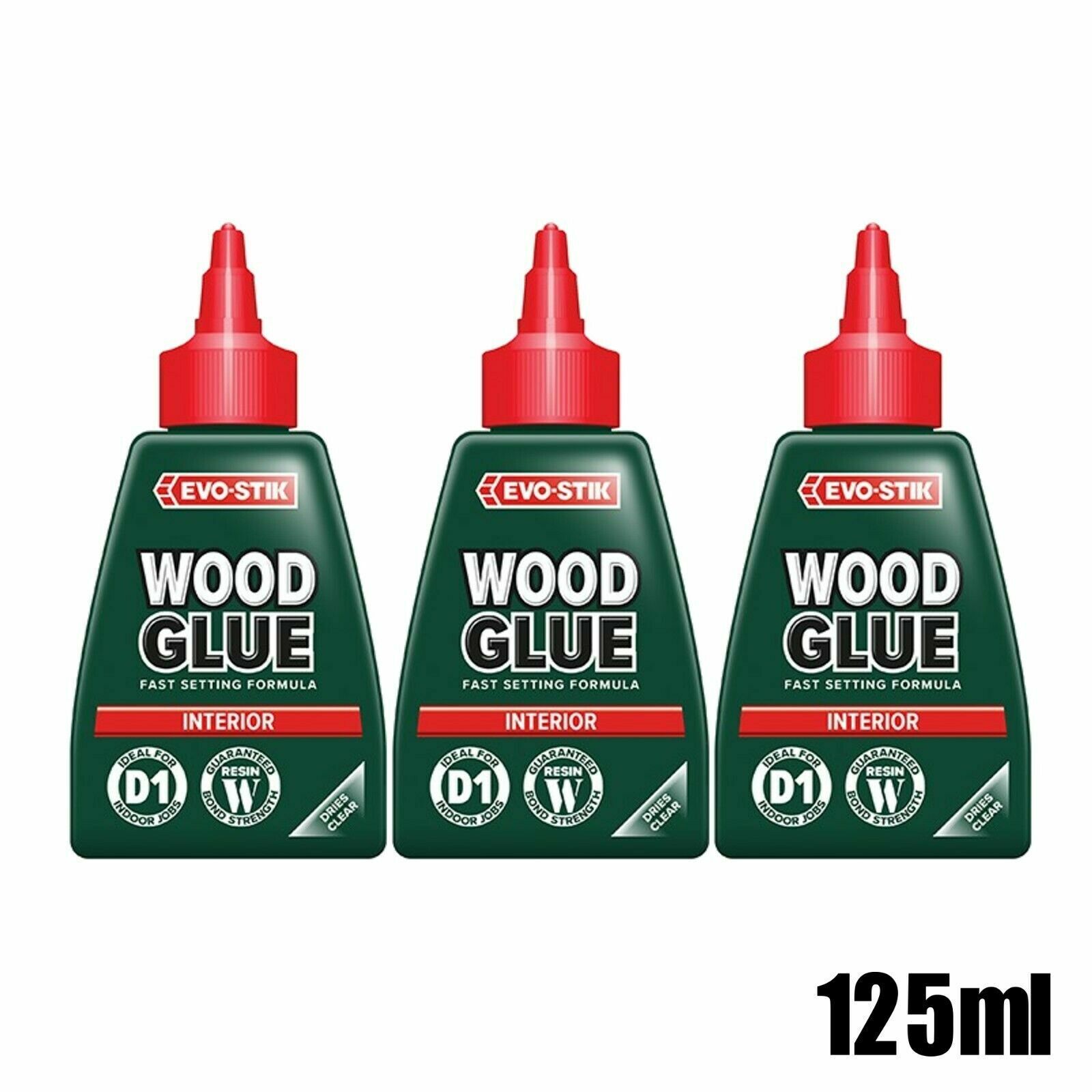 3 x EVO-STIK Wood Glue Interior 125ml Fast Setting Adhesive