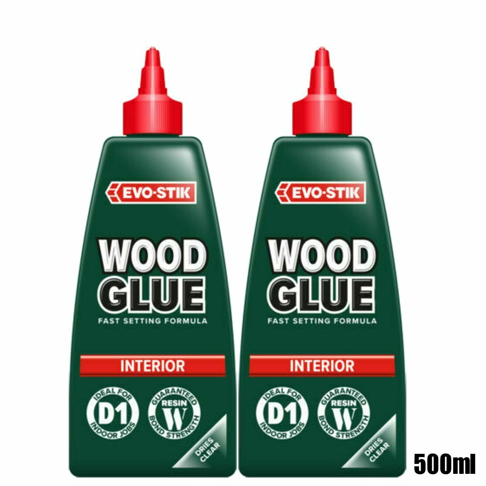 2 x EVO-STIK Wood Glue Interior 500ml Fast Setting Adhesive