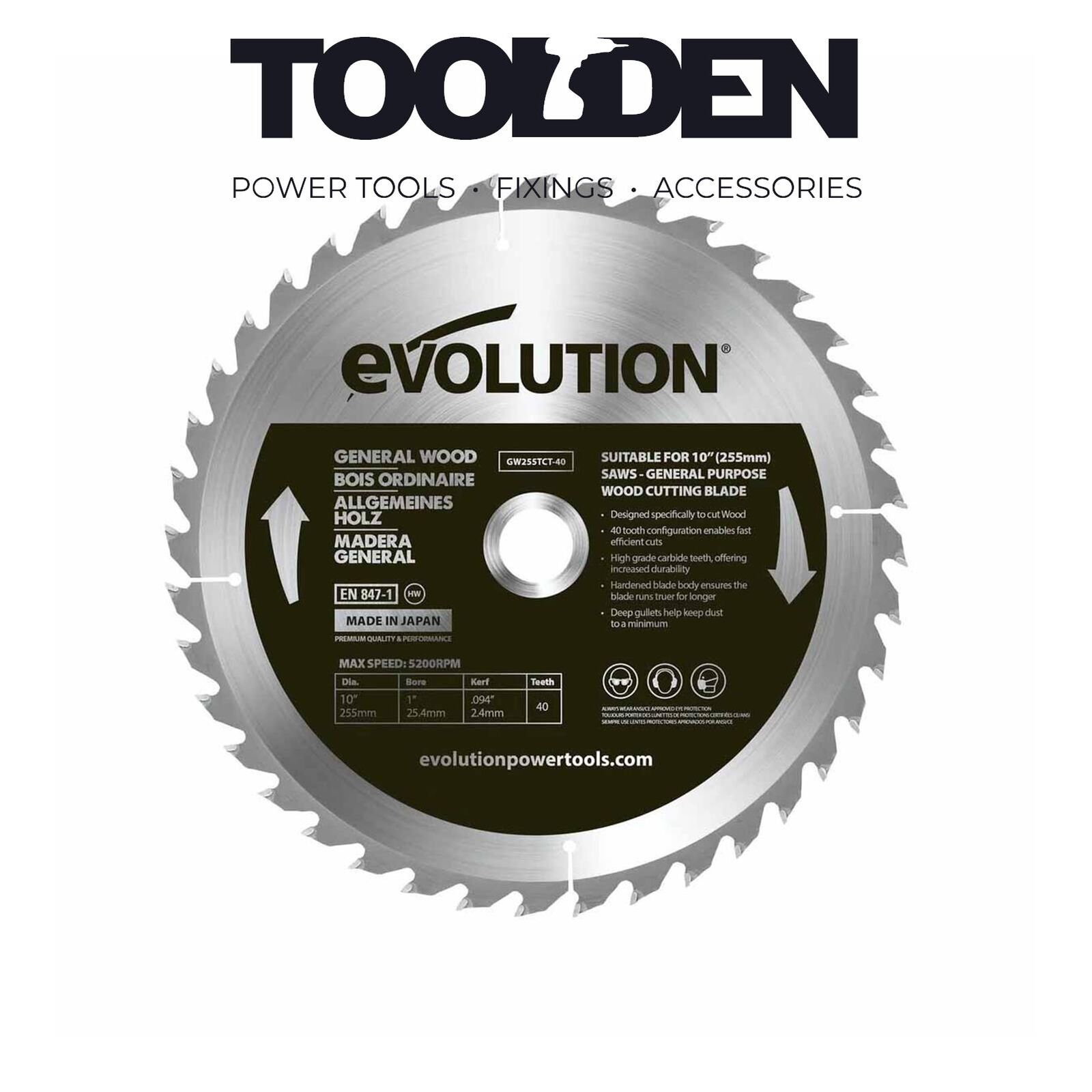 Evolution GW255TCT-40 General Wood Circular Saw Blade 255mm x 25.4mm x 40T