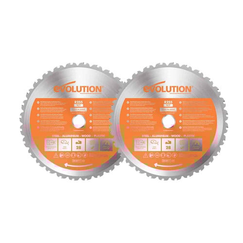 Evolution RAGEBLADE255MULTI Multi-Material Cutting TCT Mitre & Table Saw Blade 255mm x 25.4mm x 28T (2 Pack)