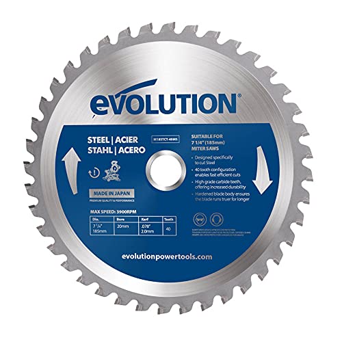 Evolution Power Tools M185TCT-40MS Mild Steel Cutting TCT Mitre Saw Blade, Cold Metal Cutting, 40 Teeth, 185mm