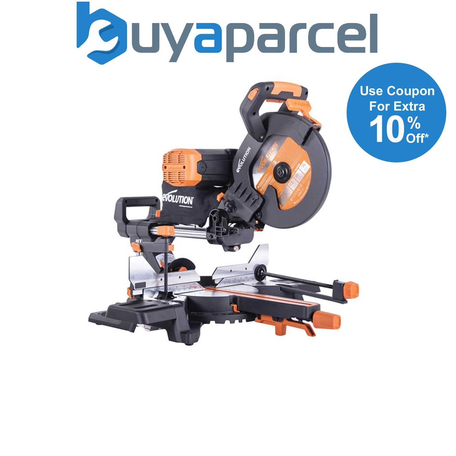 Evolution Power Tools R255SMS-DB+ Double Bevel Sliding Mitre Saw, Multi-Material Cuts Metal, Wood, Plastic & More - with Plus Pack includes Clamps, Dust Bag & Blades, 255mm (110V)