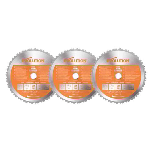 Evolution RAGEBLADE255MULTI Multi-Material Cutting TCT Mitre & Table Saw Blade 255mm x 25.4mm x 28T (3 Pack)