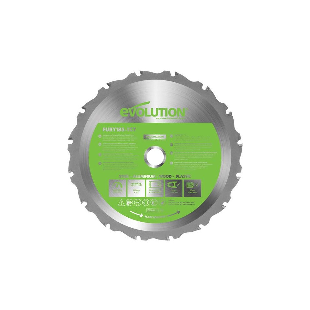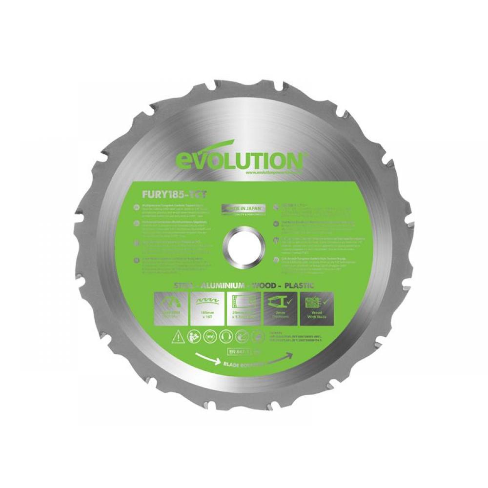 Evolution Power Tools F185TCT-16T (Fury) Multi-Material TCT Blade Cuts Wood, Metal and Plastic, 185 mm