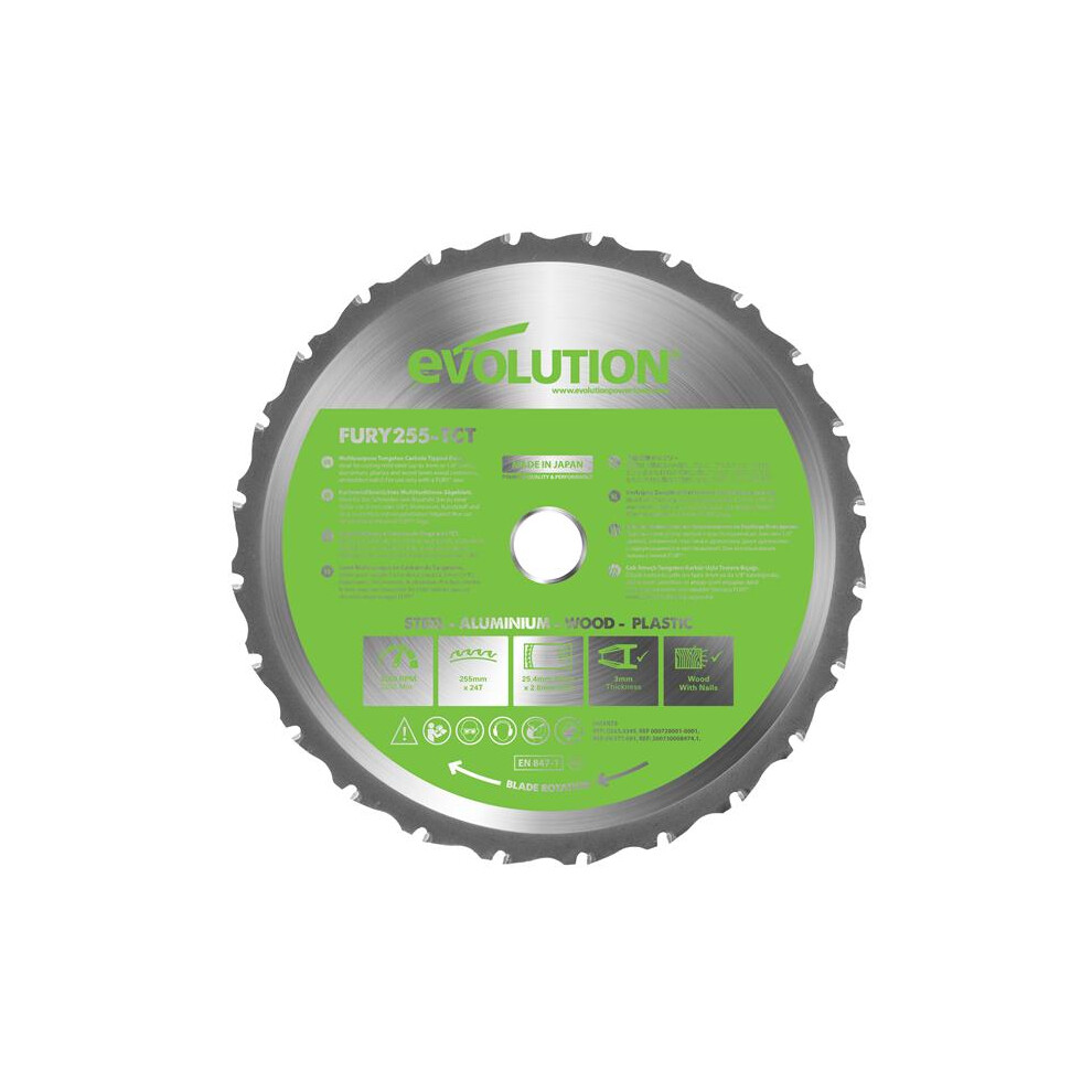 Evolution Power Tools F255TCT-24T (Fury) Multi-Material TCT Blade Cuts Wood, Metal and Plastic, 255 mm