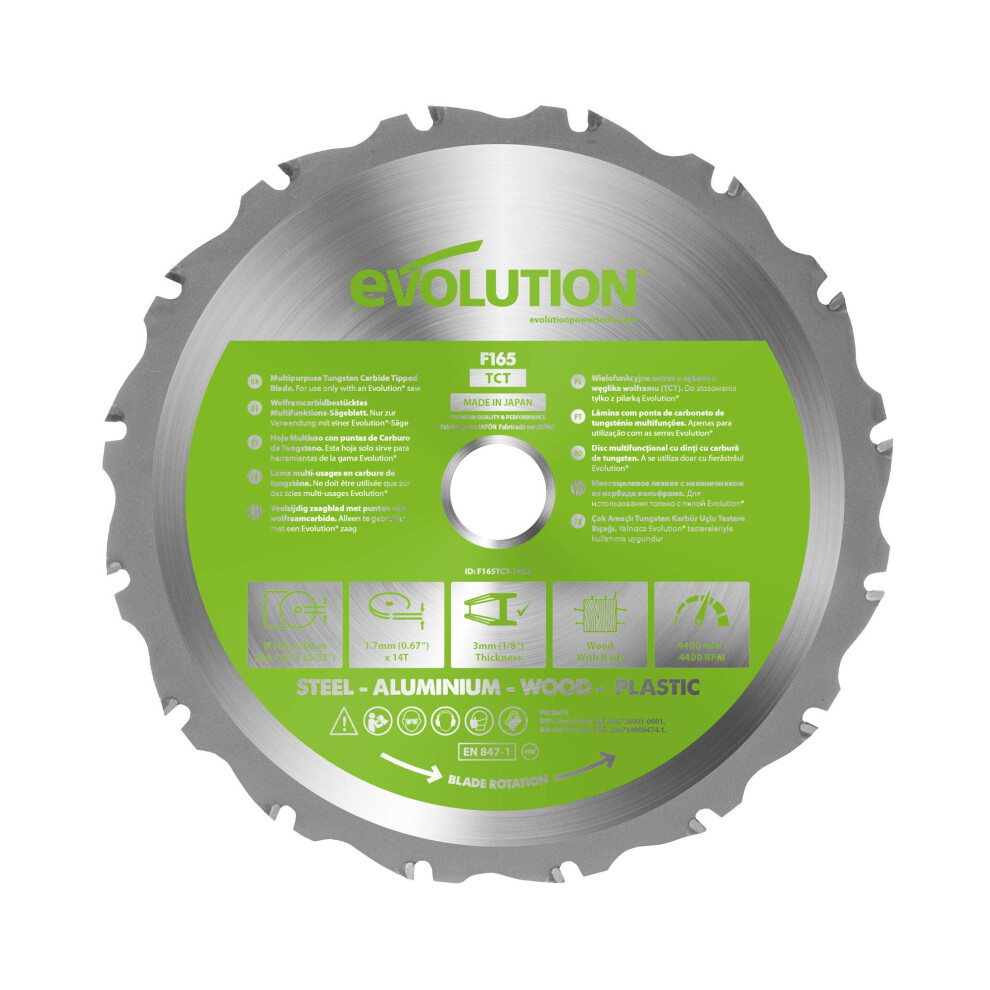 Evolution Power Tools F165TCT-14T (Fury) Multi-Material TCT Blade Cuts Wood, Metal and Plastic, 165 mm