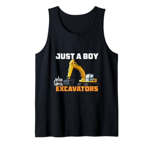 Mens Just a Boy Who Loves Excavators Tank Top