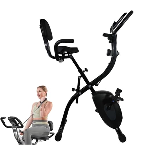 Folding Exercise Bike, Workout Bike with 10-Level Adjustable Magnetic Resistance, Upright and Recumbent Foldable Stationary Bike, Exercise Bikes for Home, Women