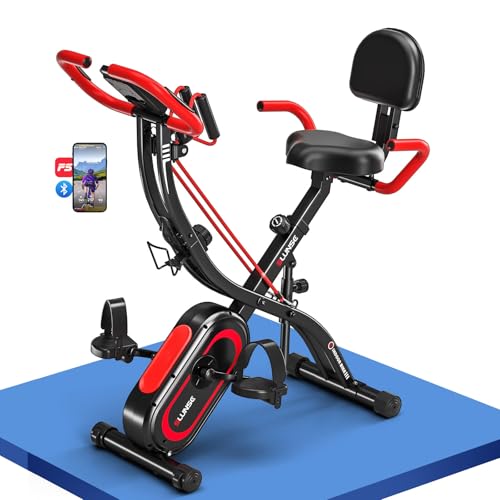 Exercise Bike, SLUNSE 5 in 1 Foldable Exercise Bike with APP, 16-Level Magnetic Resistance Folding Stationary, 350LBS Capacity and Ultra-quiet Stationary Indoor Bikes for Home Gym