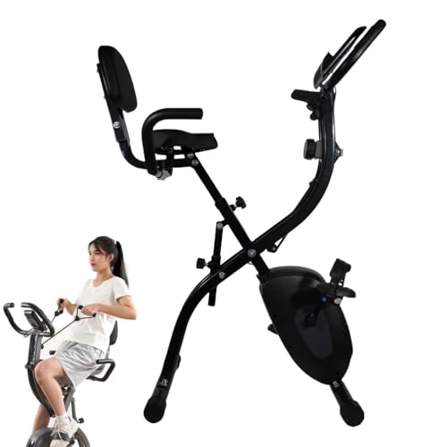 Panana Foldable Exercise Bike, Folding Fitness Cycling Cycle Bike X- Bike with Magnetic Resistance, LCD Display, Heart Rate Sensor, Comfortable Seat Adjustable Height Home Gym Workout