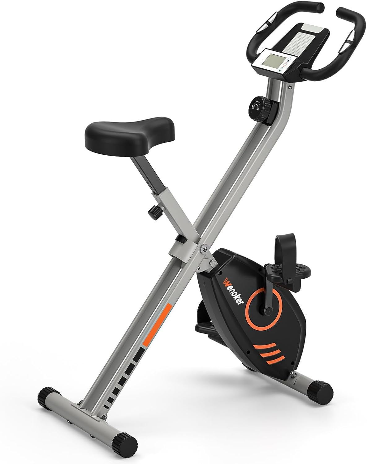 Wenoker Exercise Bike Folding with Magnetic Resistance, LCD Display, Device Holder - Foldable Stationary Fitness Bicycle for Indoor Cycling and Home Workout