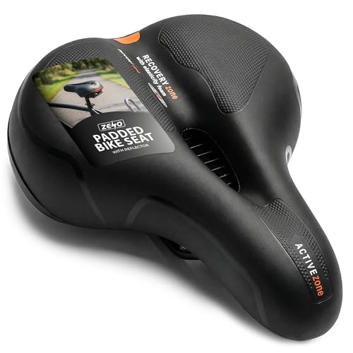 ZENO Gel Bike Seat Cushion | Waterproof Wide Bicycle Saddle | Comfortable PU Leather Saddle | Suitable for MTB, Folding, Road, Spinning & Exercise Bikes
