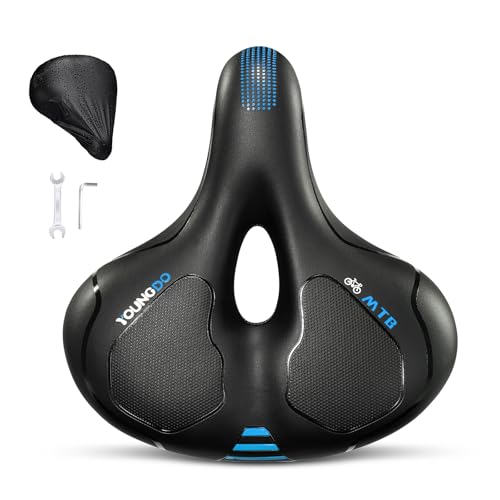 YOUNGDO Bike Seat, Comfortable Soft Wide Bicycle Saddle, Breathable Gel Cushion, Suitable for MTB, Mountain, Road, Folding, Spinning & Exercise Bikes