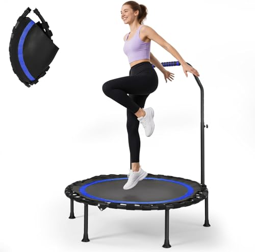 VEVOR Foldable Mini Trampoline, 51 Inch Fitness Rebounder, Max Load 450lbs Exercise Trampoline, Stable & Quiet Trampoline with 4 Level Height Adjustable Foam Handle, for Adults Indoor/Garden Workout