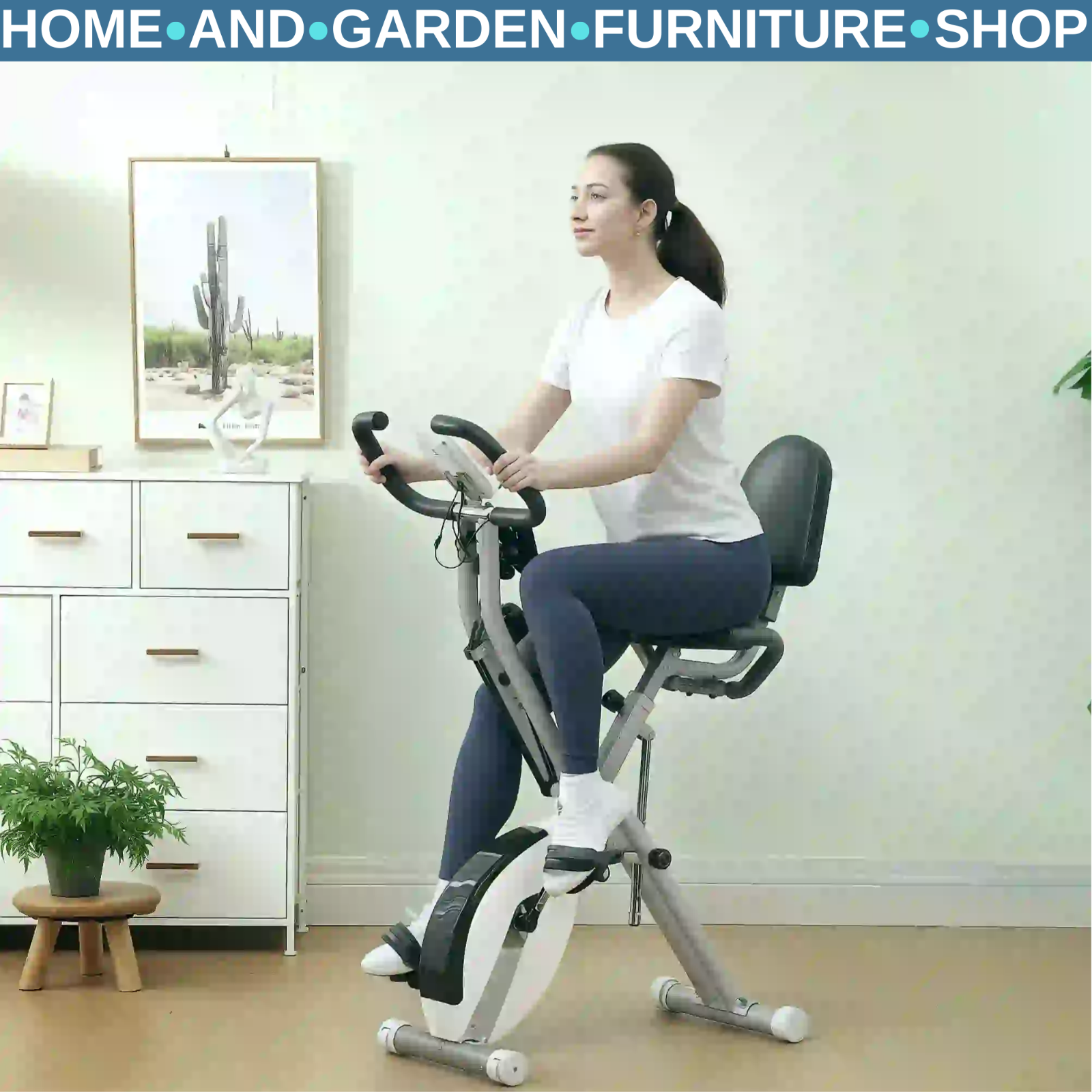 Exercise Bike 5-in-1 Foldable with LDC Monitor & Adjustable Seat Height White