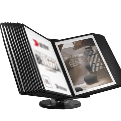 Tabletop Reference System, Adjustable Desk Flip File Holder, 10 Loose-leaf Folders, Letter-size, Page Turning Recipe Stand, Intended for Office Restaurant Exhibit & Storage A4 Format File Sorter