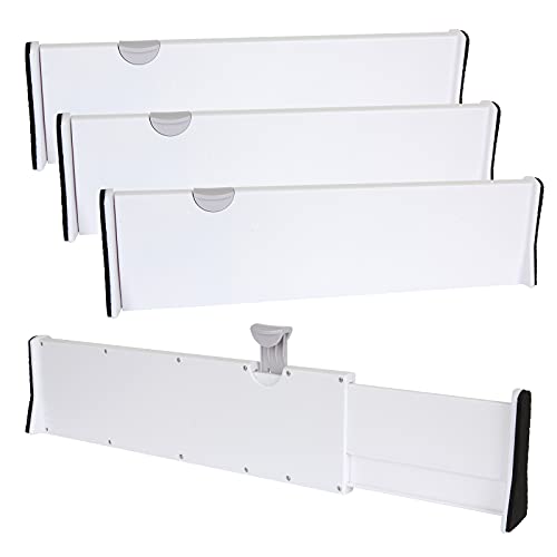 SENENQU 4 Pack Adjustable Drawer Dividers 4" High, 15"-21" Expandable Drawer Organizer, Extendable Drawer Separators with Foam Edges for Kitchen Bedroom Drawer Storage