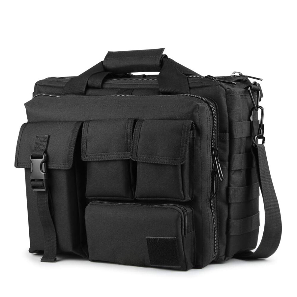 Rugged Premium Construction Nylon Fabric Military Shoulder Bag, Expandable Width With Robust Metal Zipper For Easy Access, Foam-padded PU Leather