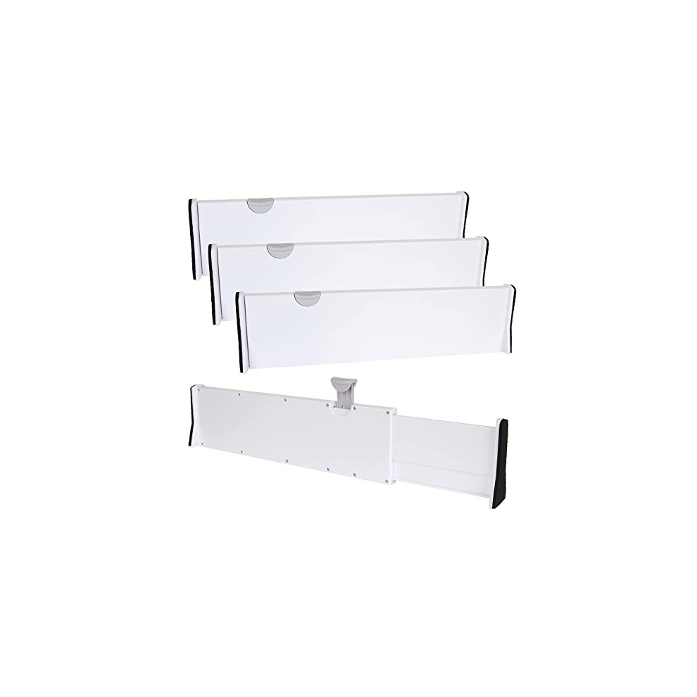 4PCS Adjustable Drawer Dividers, 15"-21" Expandable Drawer Organizer Set, Extendable Drawer Separators with Foam Edges for Kitchen Bedroom Drawer