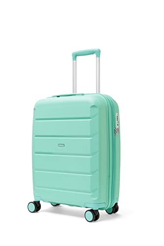 Rocklands® Lightweight 4 Wheel Expandable PP Hard Shell Suitcase Travel Trolley Suitcase with TSA Lock (Light Green, Small (55 x 36 x 23cm) (Carry On))