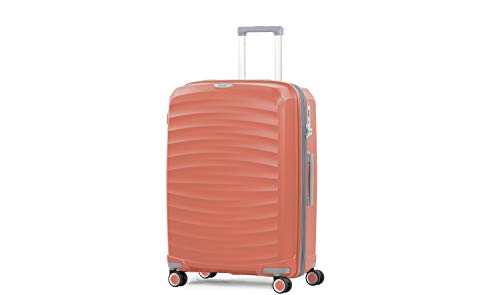 Rock Sunwave Medium Expandable Hard Shell Hold Suitcase in Peach - Built for Adventure, 360 Swivel-Wheels, Telescopic Handle, Impact-Resistant Material & TSA Combination Lock - 66x46x34.5cm 4.1KG