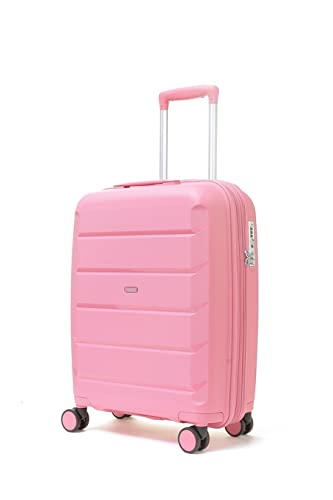 Rocklands® Lightweight 4 Wheel Expandable PP Hard Shell Suitcase Travel Trolley Suitcase with TSA Lock (Rose Gold, Small (55 x 36 x 23cm) (Carry On))