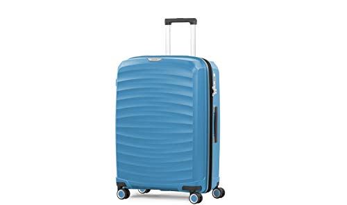 Rock Sunwave Medium Expandable Hard Shell Hold Suitcase in Blue - Built for Adventure, 360 Swivel-Wheels, Telescopic Handle, Impact-Resistant Material & TSA Combination Lock - 66x46x34.5cm 4.1KG